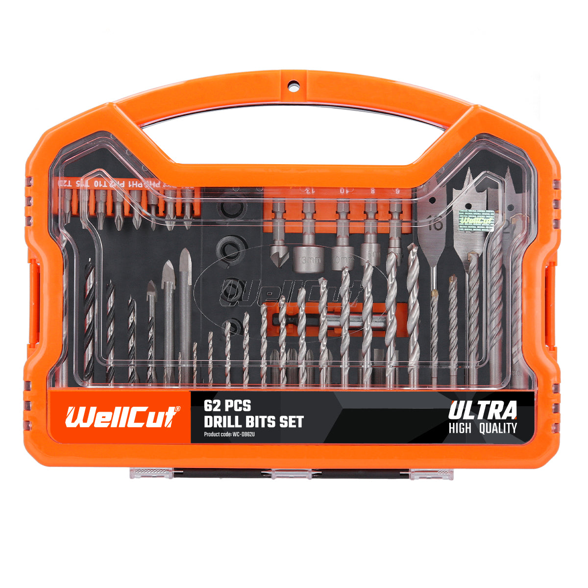 Set of screwdriver bits and drill bits, for metal, wood, masonry, concrete 62 pcs. WellCut WC-DB62U is backordered and will ship as soon as it is back in stock.