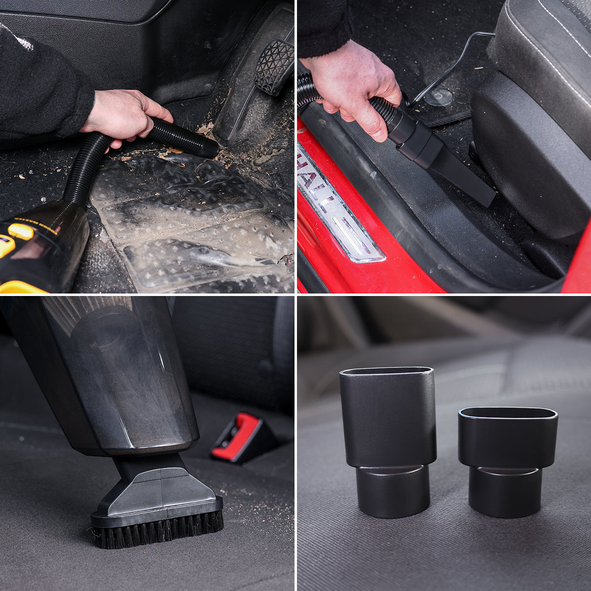 UNIQUE : The car vacuum comes with 5 accessories to help you get the most out of the tool: 1 long tube for hard-to-reach places, 1 brush for carpets and, 1 suction nozzle for cleaning under seats, crevices, holes and 2 standard nozzles.