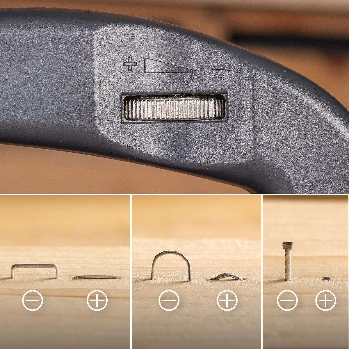 Jėgos reguliavimo rankenėlė: Jėgos reguliavimo rankenėlė leidžia reguliuoti slėgį, kad jis atitiktų jūsų namų tobulinimo projektus arba profesinius reikalavimus.