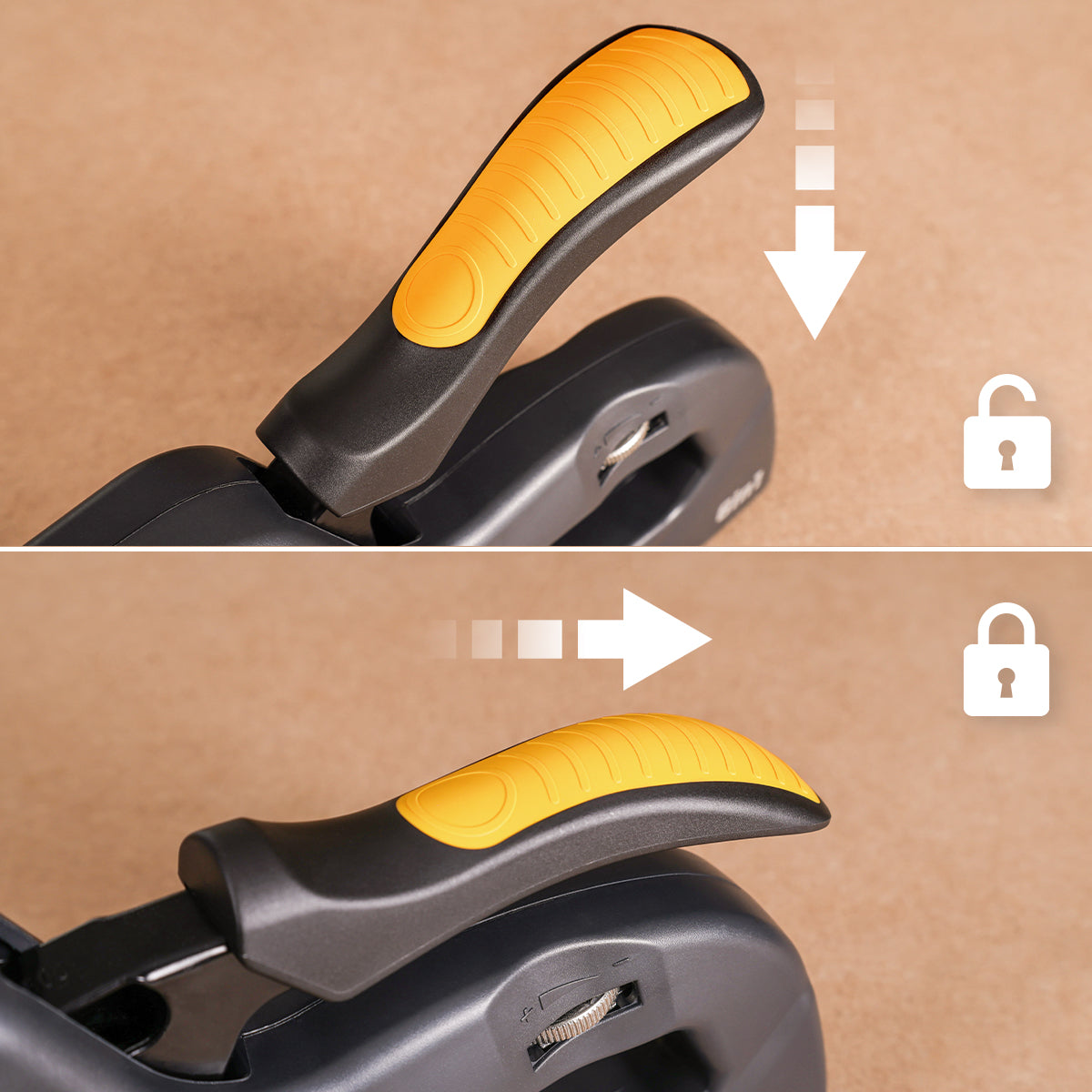 Saugus dizainas: šis vinių pistoletas buvo sukurtas atsižvelgiant į saugumą, su rankenos užrakto sistema, kuri padeda išvengti netyčinio kabės iššaudymo. Tai reiškia, kad galite laikyti segiklį ir nebijodami pradėti savo reikalų.